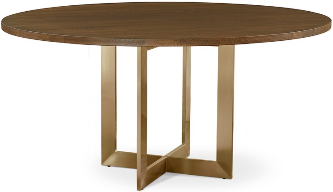 It is with natural beauty and a warm brushed brass X style base. The oak is lightly distressed and offered in finishes ranging from greys and whites to deep browns. Finish color choices available in store.