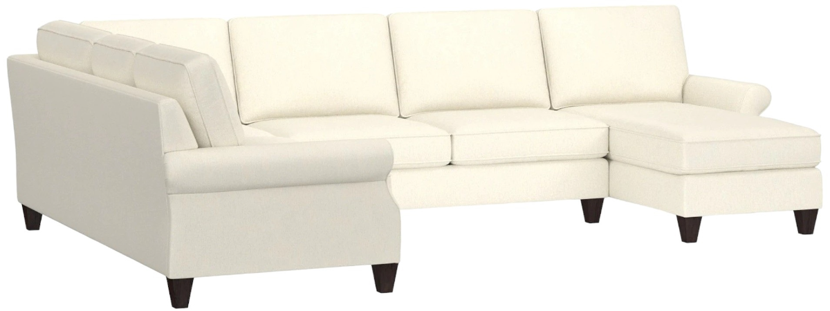 Easy style shows in the classic silhouette and relaxed feel of the Davenport U-Shaped Sectional with tall, tapered legs in a walnut finish. There is plenty of space for all within its gently curved and slightly recessed rolled arms.Read More
