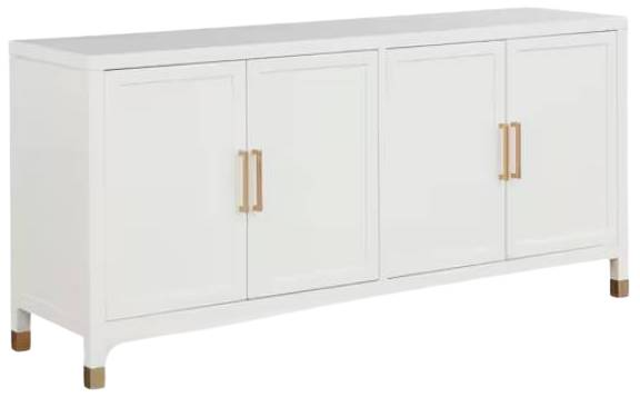 The smooth Hampton White finish, evocative of the glassy surface of coastal waters on a clear day, will brighten your dining space, hallway, or even living room. Satin brass leg ferrules and bar pulls add a sun-on-the-water glimmer to a solid storage option. Stow your treasures or display them there’s ample space for both.
