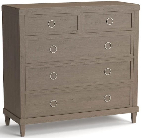 This Ventura 5-drawer dresser is beautifully scaled for almost any size bedroom. Styled with body scaled pull rings; finished with self-closing drawer guides, and cedar-lined bottom drawers. Available in 2 finishes.Read More
