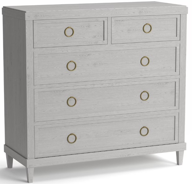 This Ventura 5-drawer dresser is beautifully scaled for almost any size bedroom. Styled with body scaled pull rings; finished with self-closing drawer guides, and cedar-lined bottom drawers. Available in 2 finishes.Read More