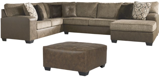 Includes sectional (right-arm facing corner chaise, armless loveseat and left-arm facing sofa with corner wedge) and an oversized ottoman