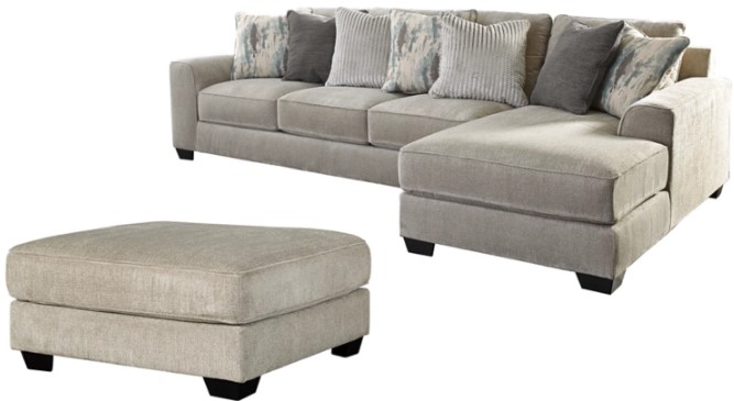 Includes 2-piece sectional (with right-arm facing corner chaise, left-arm facing sofa) and ottoman