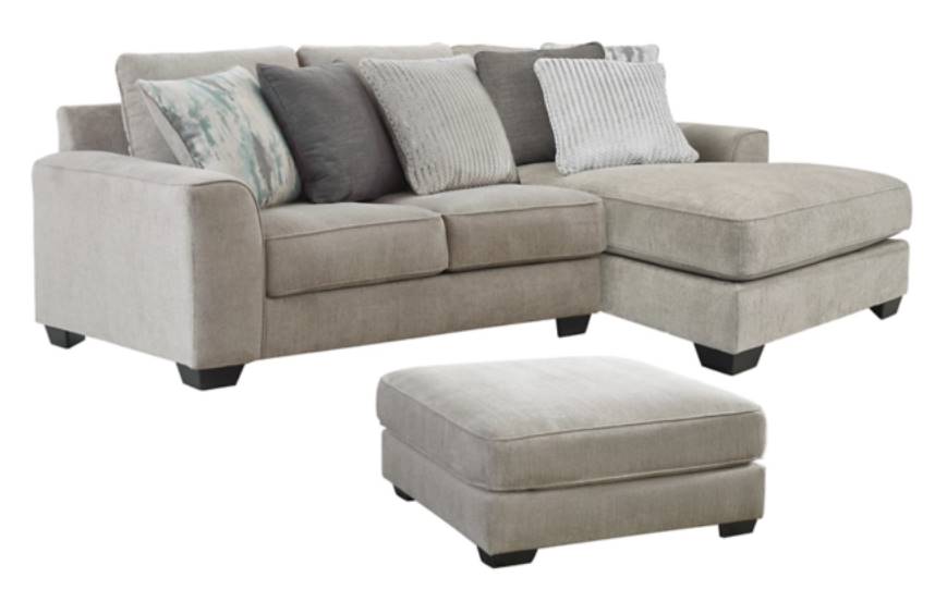 This 2-piece sectional with ottoman delights with deep comfort. It’s casually styled with big, roomy seats and textured chenille upholstery. The decorative pillows in watercolor and fun abstract designs are included for bringing beauty to the look.Read More