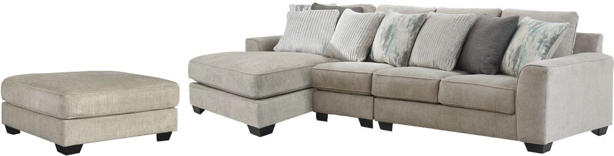 Includes 3-piece sectional (with left-arm facing corner chaise, armless chair, right-arm facing loveseat) and ottoman