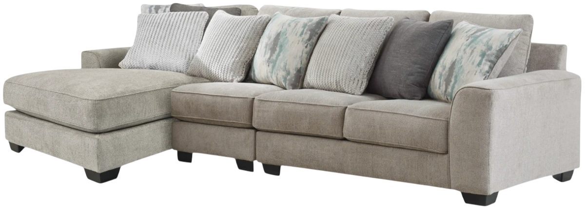 Includes 3 pieces: left-arm facing corner chaise, armless chair and right-arm facing loveseat