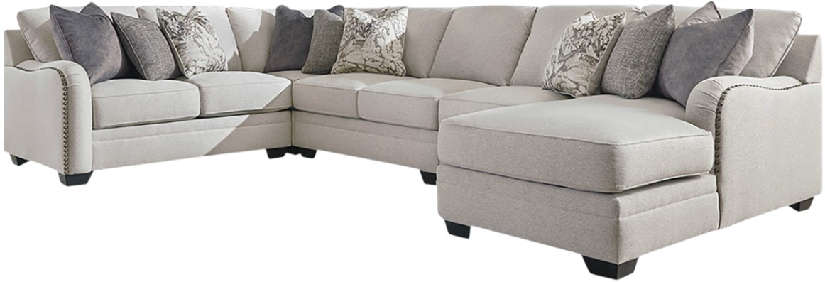 Looking for a "transitional" look that’s as comfortable in contemporary spaces as it is in classic surroundings? Rest your eyes on the beauty of the Dellara sectional. The soft, tight woven texture and chalky beige hue are so in the now. Gracefully curved arms punctuated with oversized nailhead trim infuse a sense of everyday elegance.Read More