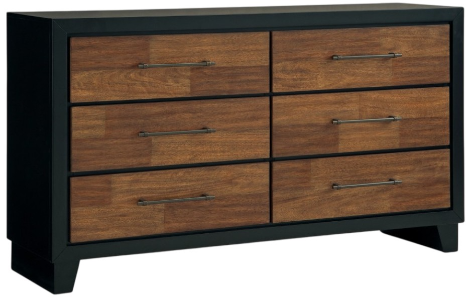 Experience the captivating allure of this dresser, an effortless blend of casual and refined aesthetics. Its two-tone finish combines satin black with a rich brown wood tone for a modern, relaxed vibe that you'll love waking up to. Perfectly suited for your contemporary home, this dresser has plenty of drawer space to tuck away your wardrobe and spare bed linens.Read More