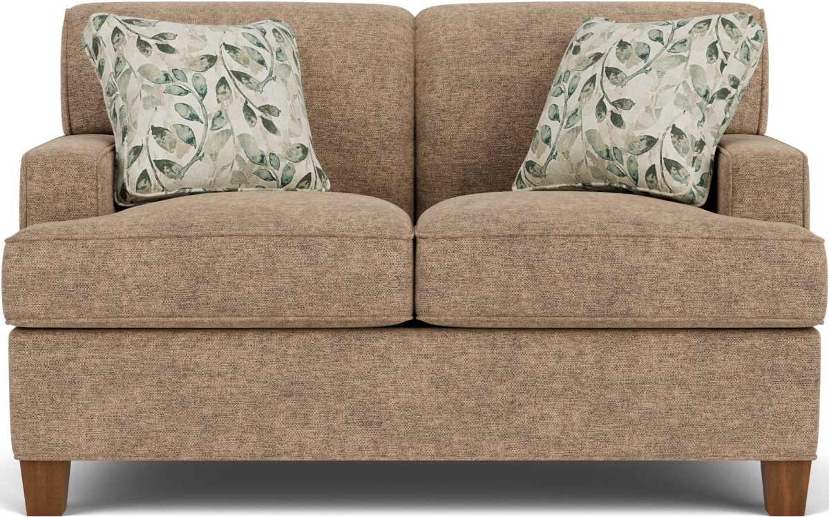 Recessed track arms accompany the plush cushion seating of this loveseat for a warm invitation to settle in. Pair it perfectly with a range of styles that complement its clean lines while its handsome wooden legs complement your décor.