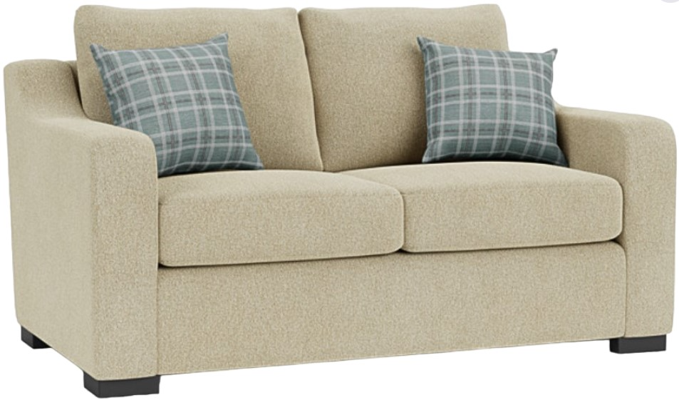 Harmonious Flair. Cozy and casual yet stylishly relevant, the Quinn loveseat exudes an effortless vibe that harmonizes with any decor. Gently sloping track arms sit atop black recessed legs to make a statement. Two accent pillows add flair, while plush, sink-in cushions ensure that comfort never gets compromised.Read More