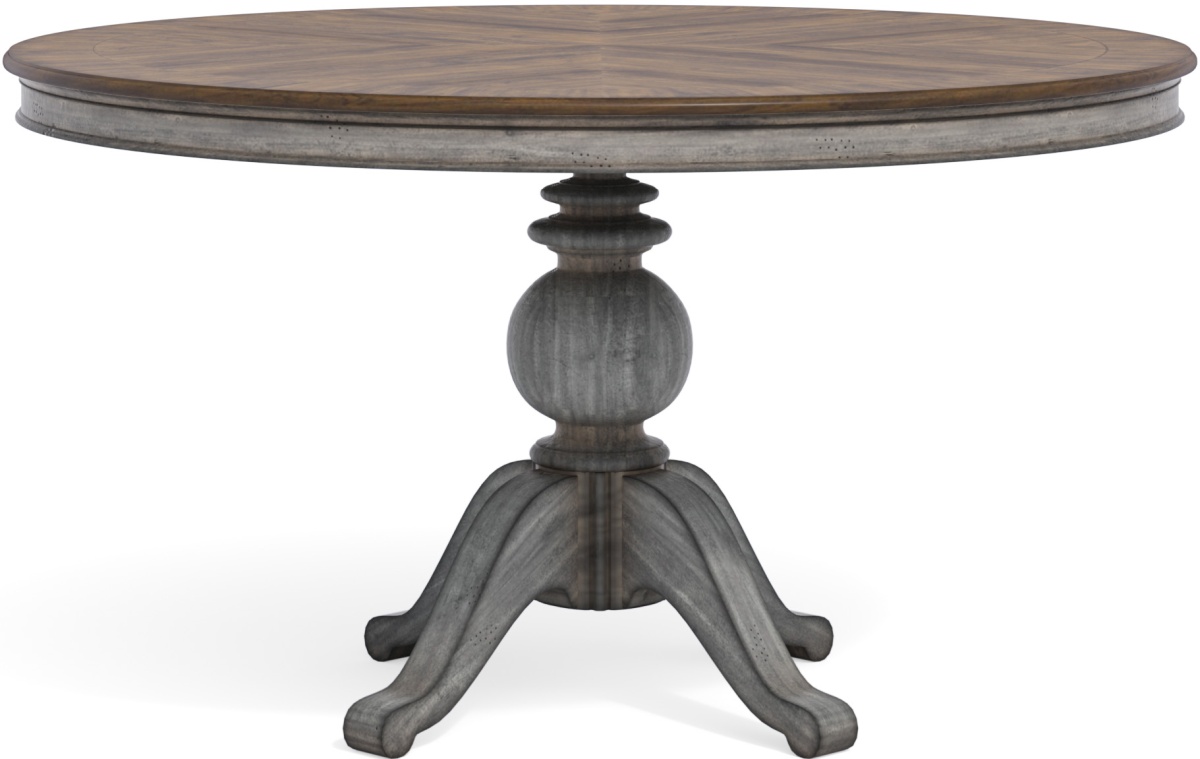 Vintage-inspired yet undoubtedly modern, the Plymouth round pedestal dining table provides high visual appeal and welcomed functionality. The table sports contrasting wood finishes with a dark tabletop for added aesthetic.
