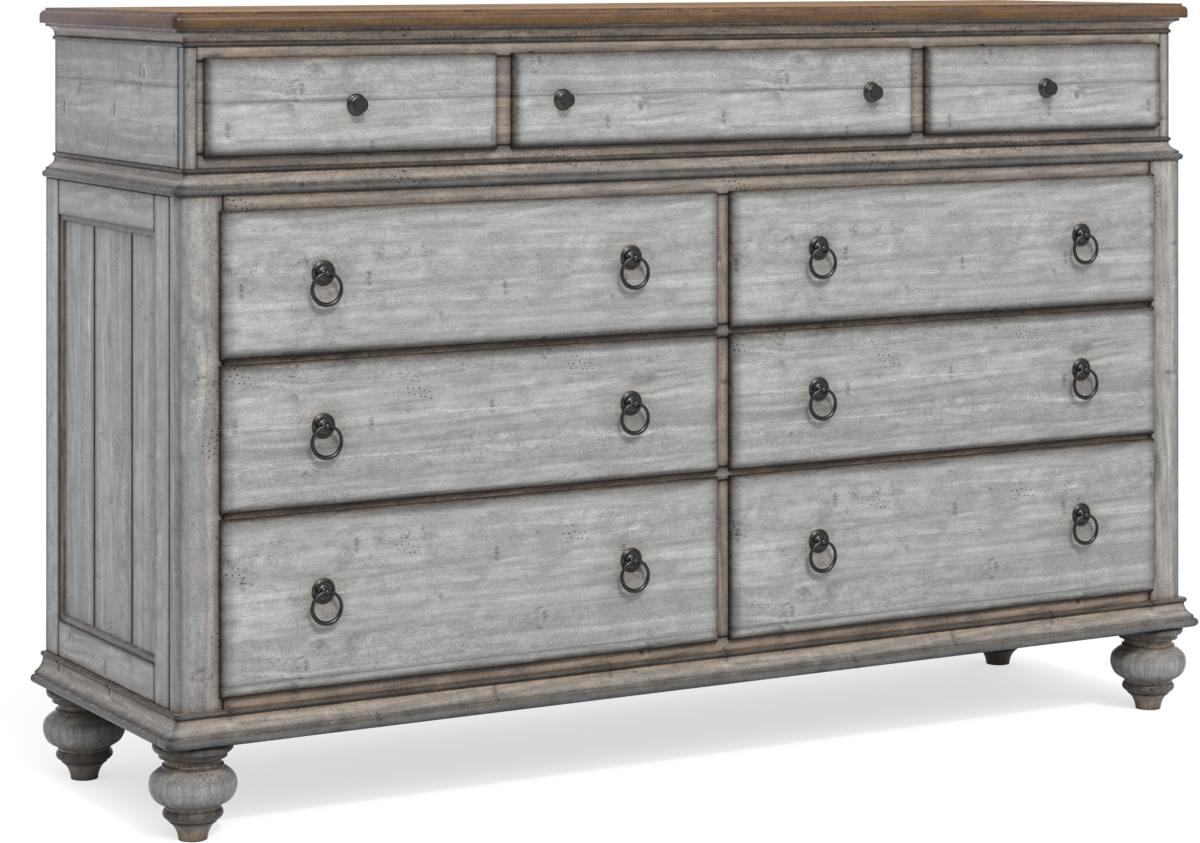 Perfectly complementing our various Plymouth bed styles, this cottage-inspired dresser supports your every storage need. Ample storage is provided with nine spacious, easy-to-open drawers accented by contrasting gunmetal pulls. Felt-lined top drawers and cedar-lined bottom drawers protect delicate items and clothing from damage and pests, while a convenient drawer with false bottom conceals valuables.Read More
