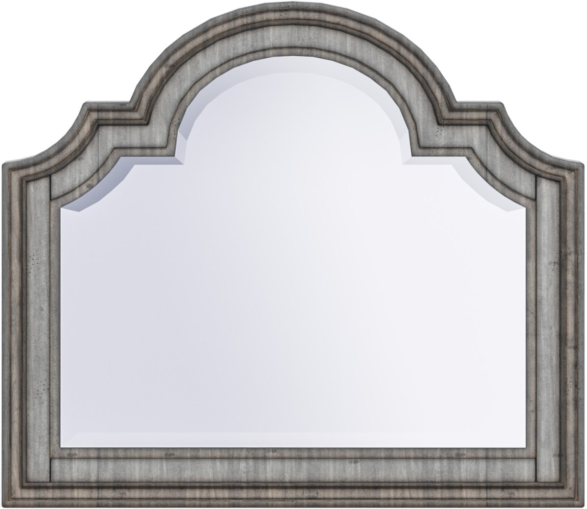 Warm and Weathered. The perfect companion to the Plymouth dresser, this charming mirror adds relaxed, cottage-inspired style to any bedroom. Beveled glass, a scalloped profile, intricate molding and a weathered graywash finish add to the vintage appeal.Read More