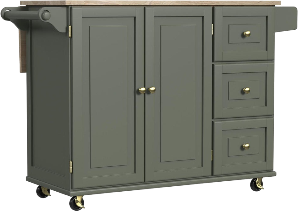 Maximize the storage space and work surface in your kitchen with this Dolly Madison Kitchen Cart by Homestyles. The natural, solid hardwood surface sits atop a sage green, durable engineered wood frame, which can be easily moved throughout your space on lockable casters to bring convenience right where it's needed most. Loaded with space-saving features and storage options, it brings the ultimate in versatility and charm to your kitchen.Read More