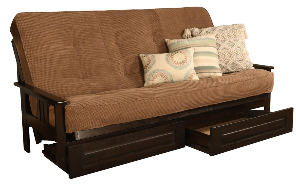 The mission style design on the arms of this solid wood futon frame cradle your mattress for sleeping comfort -- pillows and sheets stay put when using it as a bed. This easy-to-adjust frame comes in an array of colors and the comfort of sofa height seating.Read More