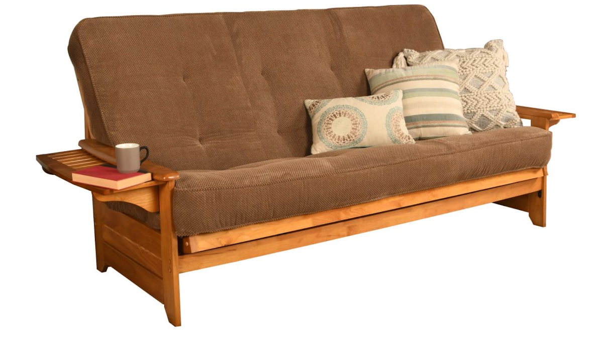 The Phoenix futon is a classic hardwood frame with tray style arms. This unique and versatile queen-size futon sofa easily converts to a Bed. It offers three positions - sit, lounge and sleep to seemlessly transition from day to night. This multifunctional piece of furniture can find a home in just about any type of room.Read More