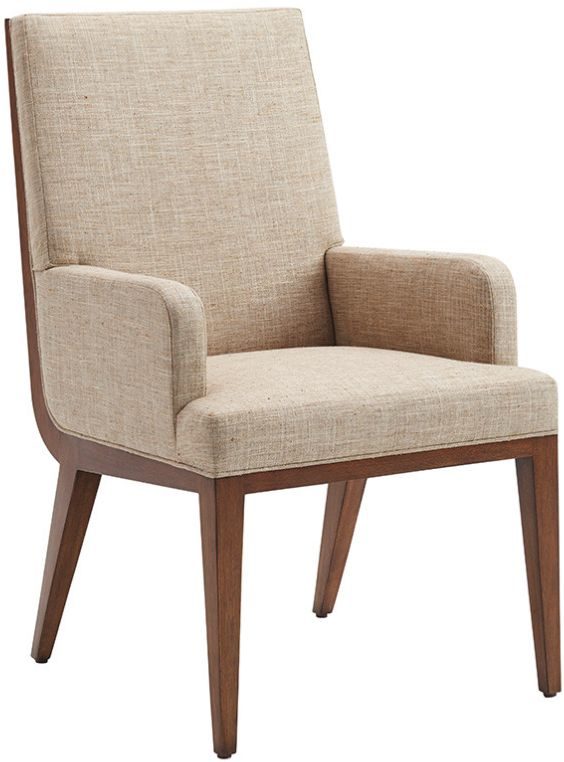 This fully upholstered side dining chair design is available as shown in the Medford fabric 412412, a linen weave pattern in soft shades of ivory and taupe with an extremely soft hand. The elongated leg extends into the side for a dramatic flair.Read More