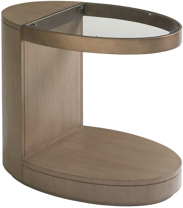 The oval end table features a unique cantilevered design, it is one of the collection's most iconic pieces. An open, tempered glass top provides you with display space for showing off decorative items or a natural arrangement of flowers.Read More