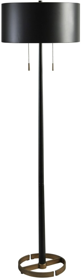 Elevate your decor with the polished look of modern design. This floor lamp delivers a sleek black post, goldtone base and haute black metal shade. Highlight your home with the understated elegance of this accent lamp.Read More