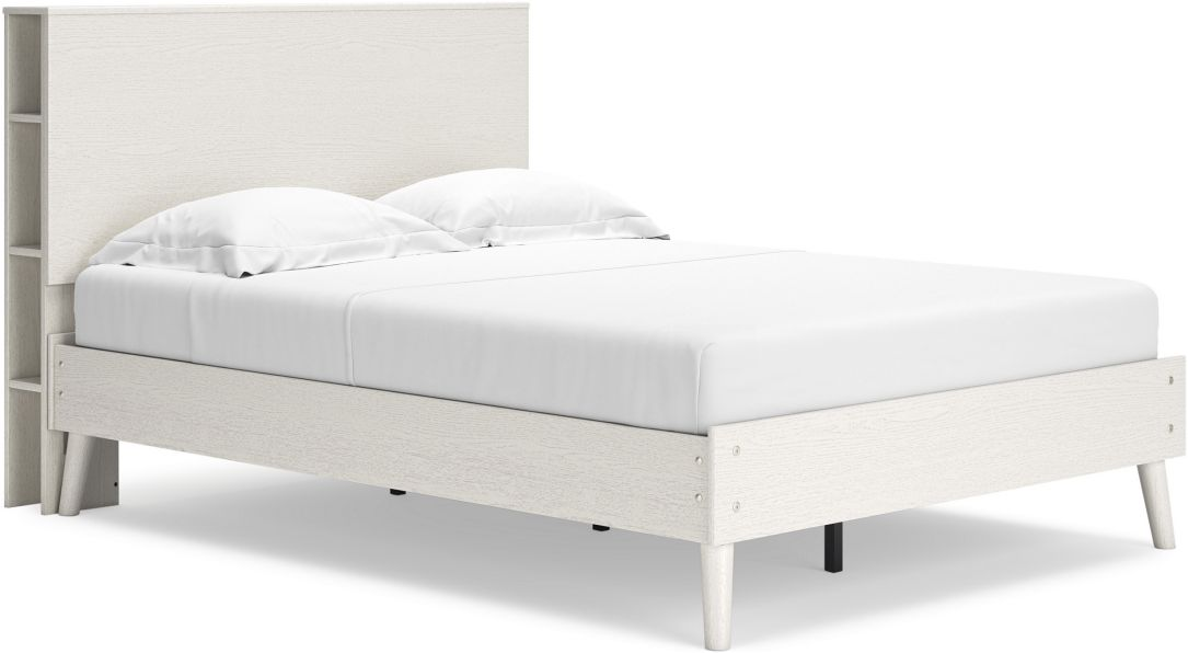 Dare to take minimalism to the max. This full bookcase bed has an air of sleek simplicity thanks to its white painted finish with subtle replicated wood grain. A space-efficient storage option, cubbies along the side of the headboard ensure you can keep your favorite reads within reach. USB charging keeps up with your high-tech lifestyle. There's no doubt about it: This contemporary piece is sure to become a classic.Read More
