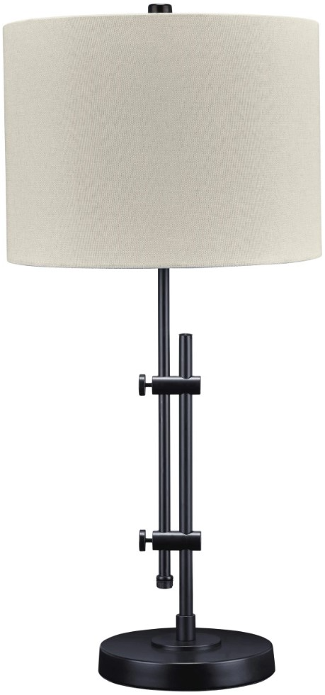This metal desk lamp features a beautiful black finish that adds a rich accent to your living space. The lamp is elegantly engineered, and is adjustable to provide targeted illumination. Topped off with a crisp white drum shade, this lamp provides a subtle and appealing contemporary design wherever placed.Read More