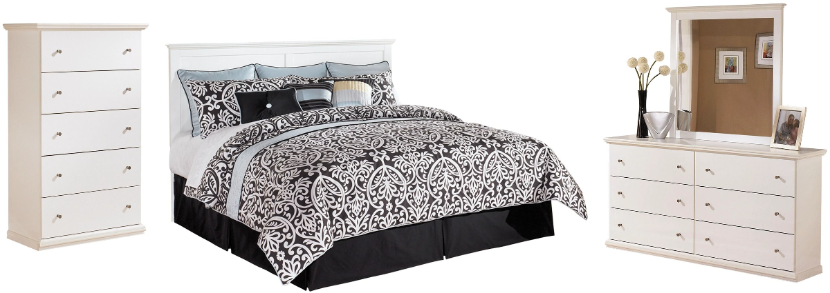 Clean and simply beautiful, this bedroom set with panel headboard, dresser/mirror, and chest masters the art of understated elegance. Whether you’re looking to exude an air of cottage-chic flair or a modern classic vibe, this easy-to-love look makes just the right statement. Pewter-tone hardware is a pure pop of sophistication.Read More