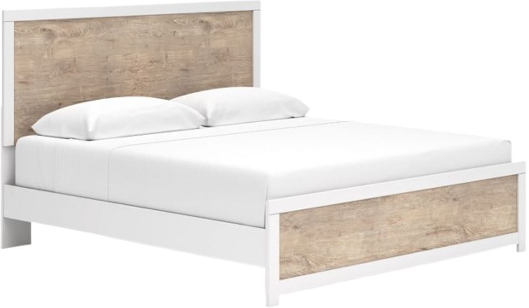 Relaxed yet striking, this queen panel bed brings casual beauty and function to your dream destination. A delightful two-tone treatment blends a fresh, replicated oak grain with a matte white finish that's easy to love. Its simplicity lends a contemporary touch that suits your bedroom's style.Read More