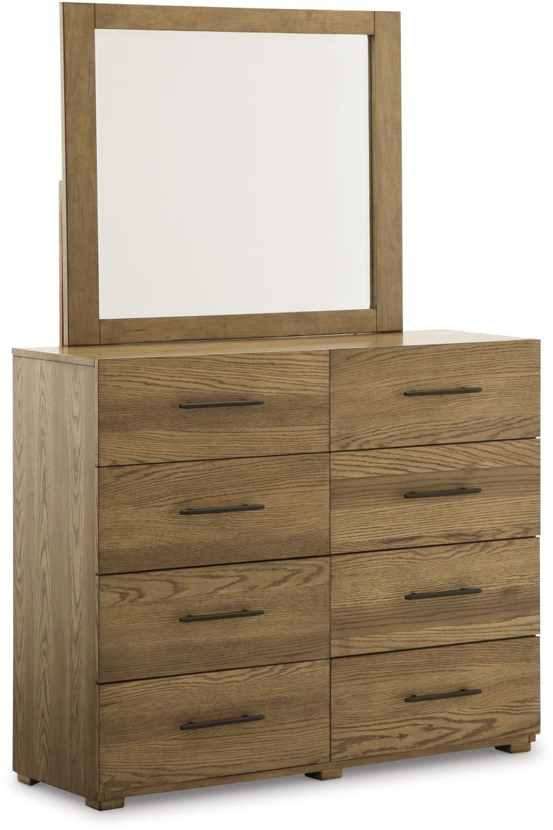 Taking an organic approach to a curated bedroom aesthetic, this warmly neutral dresser with mirror has a natural appeal. Sleek bar pulls in a blackened iron finish accentuate the drawer fronts, providing subtle contrast to the clean-lined design.Read More