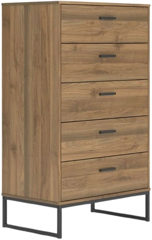 Five smooth-gliding drawers with vinyl-wrapped sides and back for durability