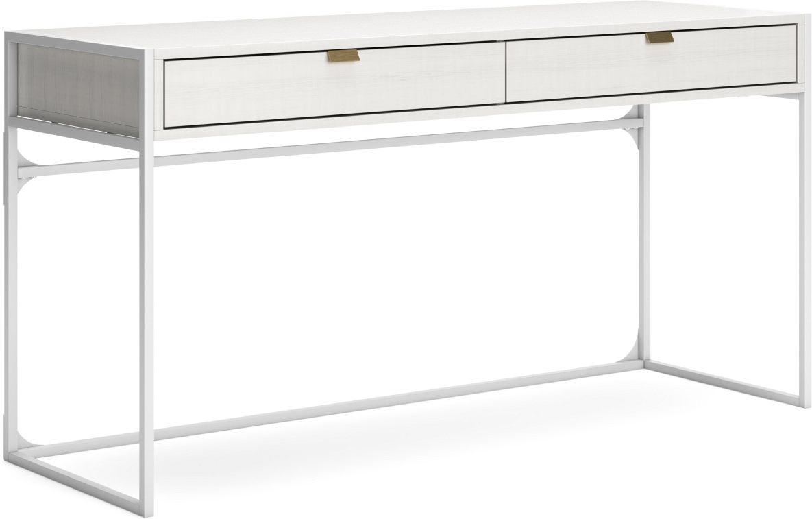 Bring your vision of a modern home workspace to life with this sleekly designed home office desk. Its linear construction and white finish keep things minimal. Two drawers with goldtone hardware round out the versatile, striking desk.Read More