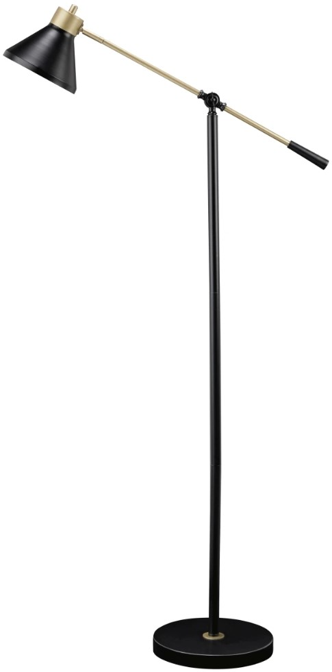 Black and metallic tones make this floor lamp understated but refined. The adjustable metal arm casts light in the direction of interest. This long, lean standing lamp is perfect for playing games or reading as long as you like.Read More