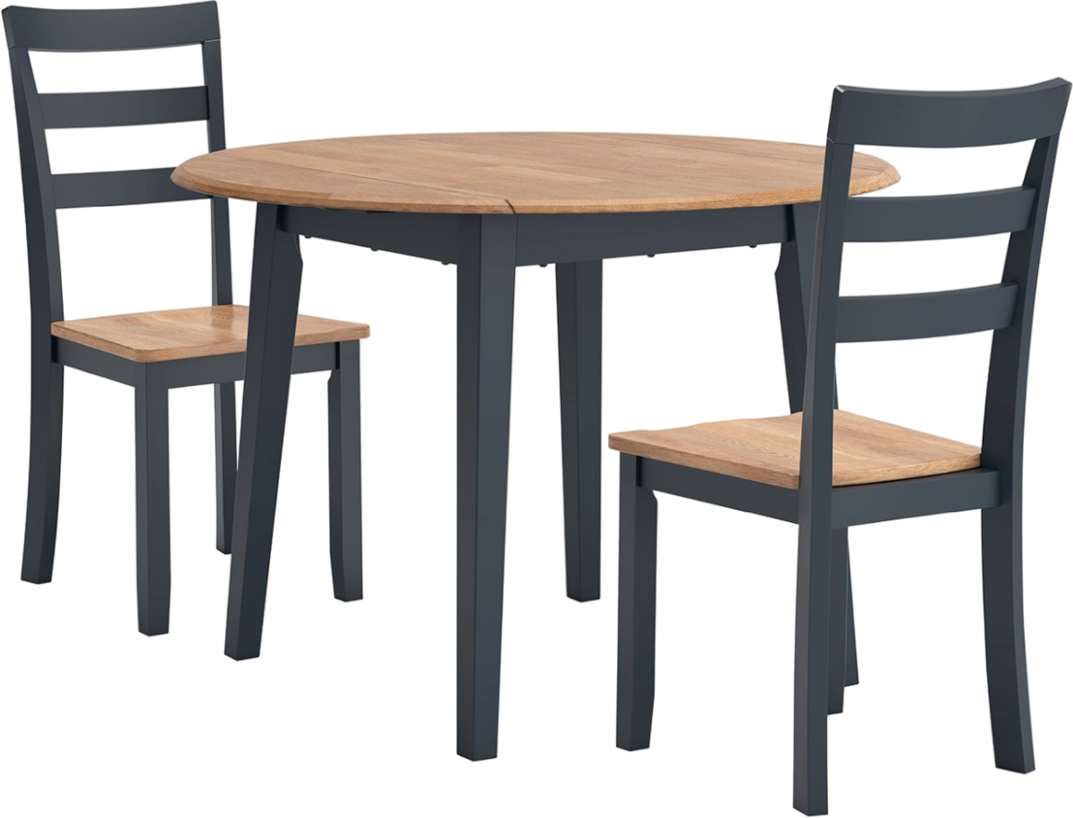 Complement your home’s simply relaxed sensibility with this drop-leaf dining table. A dark blue hue offers a chic contrast to the natural wood tone, for a casual look that vibes with a variety of aesthetics. When guests drop by, convert it from a space-saving two-seater to a larger table with the two drop leaves.