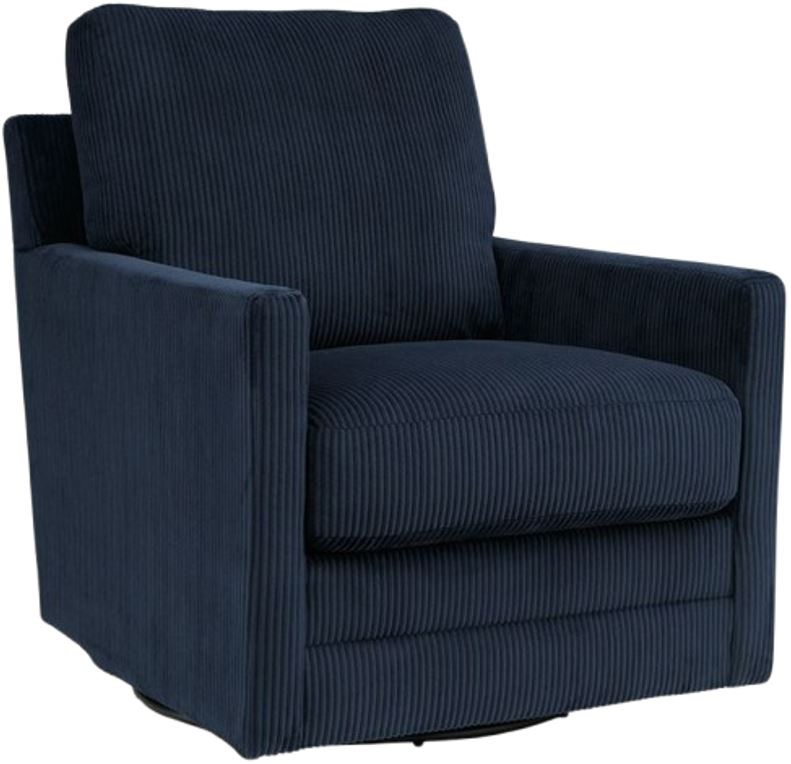 Clean-lined, contemporary style. Relaxed, homey comfort. This swivel chair has it all. Lightweight navy blue corduroy upholstery makes it a cozy yet head-turning piece. Factor in the 360-degree spin, and you've got a win-win.Read More