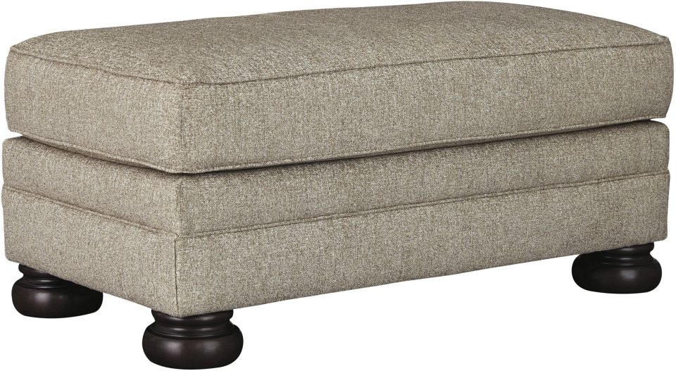 This sumptuously styled ottoman proves that a richly traditional look doesn’t have to break the bank. Choice of a plush chenille upholstery in oatmeal is earthy elegance at its best. Distinctively turned bun feet in a dark finish add to the ottoman’s substantial presence.Read More
