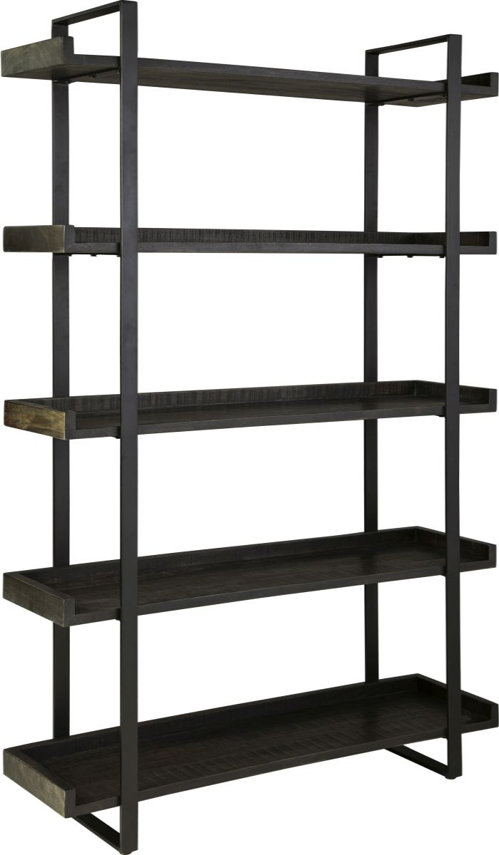 This bookcase has a mixed-material look that seamlessly slips into any contemporary scene. It impresses with the raw beauty of its saw mark effect and grayish brown glaze. Sleek black metal supports provide visual balance.Read More