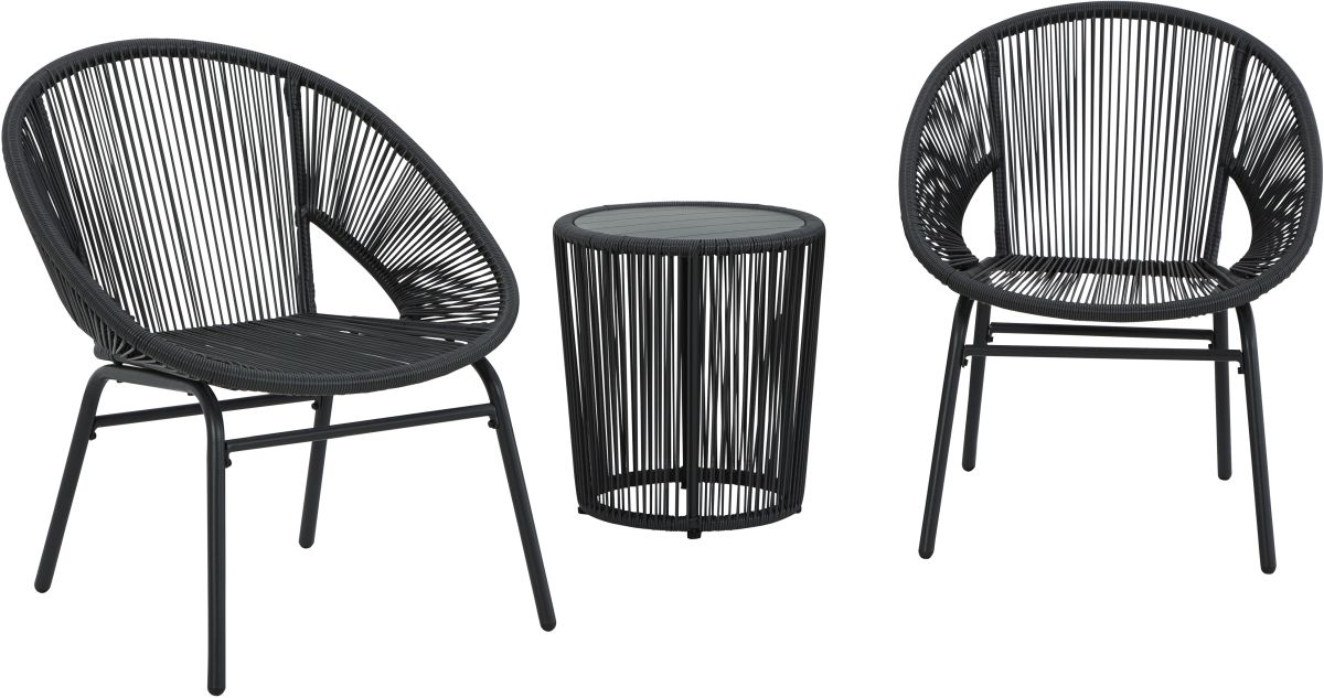 Treat yourself to trend-right outdoor design with this table and chair set. It elevates your patio, deck or poolside seating area with sleek gray resin wicker over a durable powder coated steel frame. The included end table with an aluminum top keeps your essentials for everyday relaxation within reach.Read More