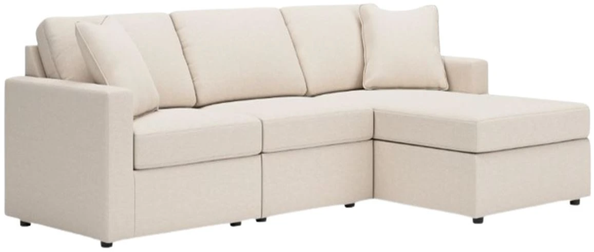 Includes 3 Modular Pieces: Left-arm facing corner chair, armless chair and right-arm facing corner chaise