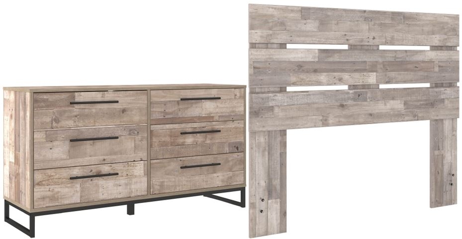 Includes panel headboard (does not include bed frame) and 6-drawer dresser