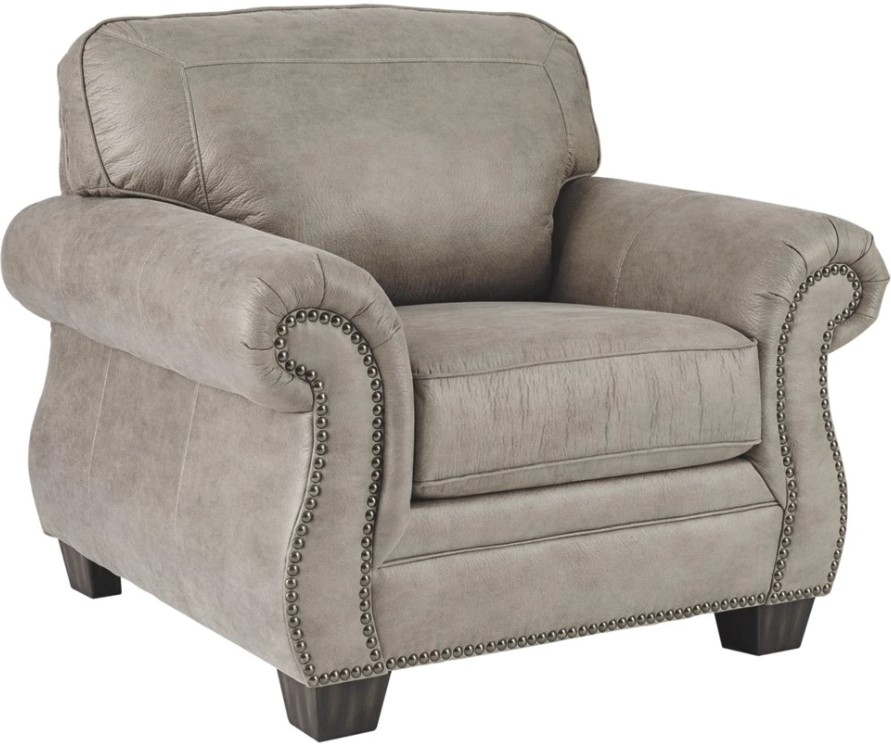 Seamlessly merging classic elements with modern trends, this chair invites you to bring home the best of then and now. Wrapped in a fabulous steel gray upholstery with sumptuous suede-like feel, this easy-elegant chair is dressed to impress with updated roll arm styling and tailored touches including nailhead trim and window pane stitching.Read More