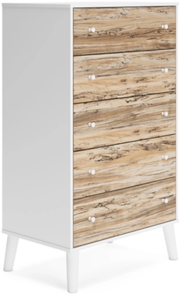 The perfect marriage of contemporary and casual style, this chest of drawers is a charming addition to your home. It's expressive with a two-tone look in a solid matte white finish and a replicated sugarberry wood grain pattern.Read More