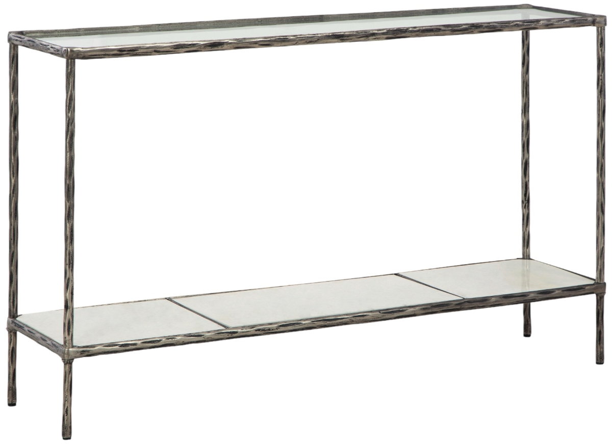 Give your home vintage charm and valuable storage with this stunning console sofa table. In a beautifully constructed of sand casted aluminum in antique pewter finish, white marble and clear glass.Read More