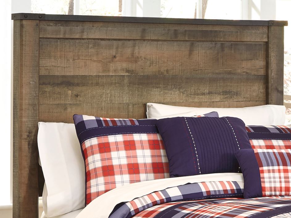 Whether she loves horses or he's a cowboy at heart, Trinell full panel headboard matches their authenticity. Rustic finish, plank-style details and nailhead trim pay homage to reclaimed barn wood, making for a chic look loaded with charm.