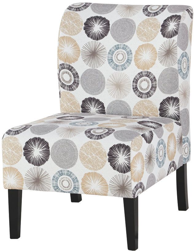 The Triptis accent chair features a gray and tan-colored circle motif that enhances your stylish taste. With the soft polyester upholstery and high-resiliency foam cushioning, indulge in unending comfort.